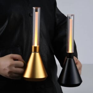 Move over candlelit dinners—there’s a romantic new way to dine anywhere at any time. by the subtle glow of our LED table lamp. Our battery-operated cordless table lamp uses rechargeable USB batteries and is crafted of aluminum alloy with a chic metal finish. Ideal for any setting.